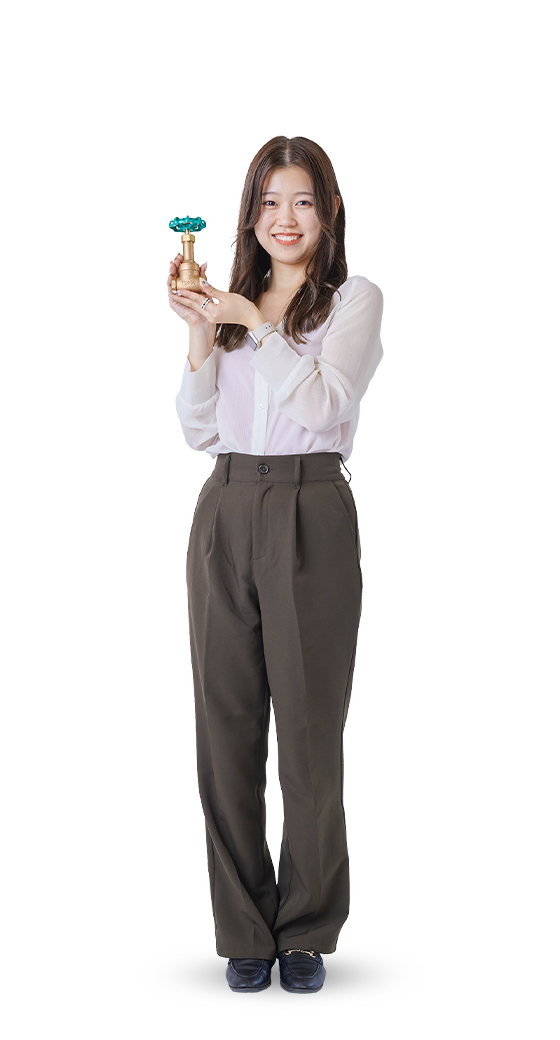 大学の学内企業説明会に参加したことがきっかけです。選考に進んでいくうちに社員の方々の温かさに触れ、この会社で働きたいという思いが強くなりました。また「管材」は普段あまり目にしないものですが、建物には必要不可欠であるため、扱う商材の重要性にも惹かれました。