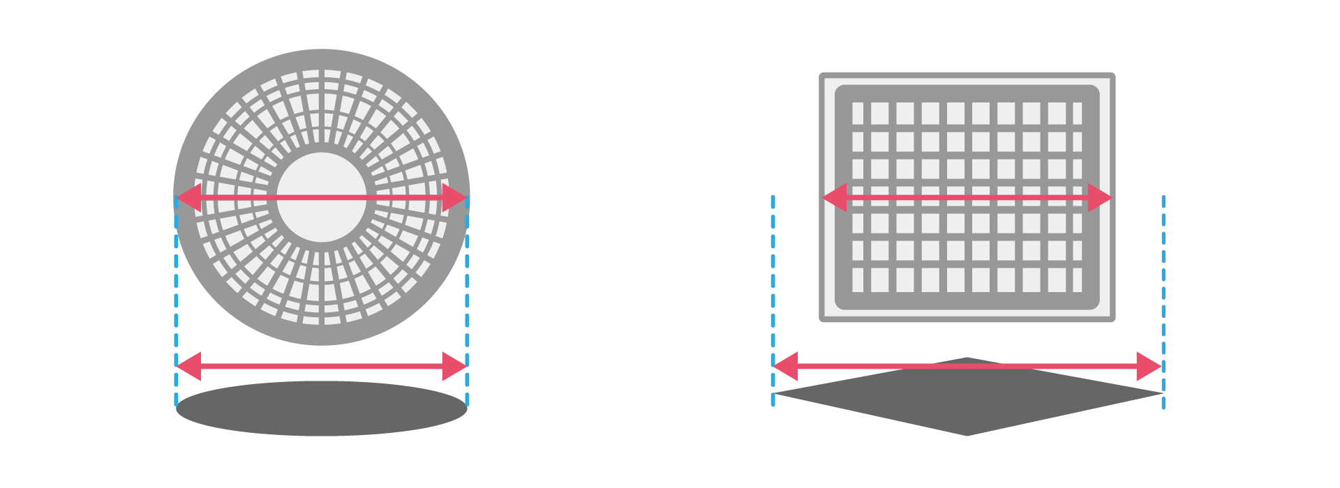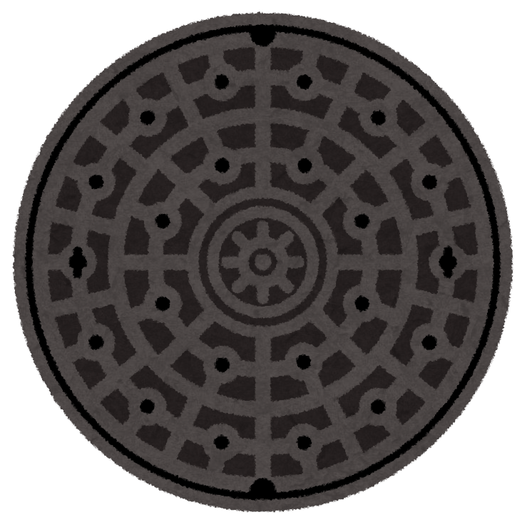 マンホールの蓋が丸ではなく四角だった場合、蓋の向きによって一辺の長さよりも穴の対角が広くなり、蓋が落下する危険性があります。正円であれば直径の長さがどこも同じになるので、点検や工事で蓋を開けている際や、道路を車が通ったときなどの振動でマンホールの中に蓋が落ちてしまうのを防ぐことができるので、円形の蓋が採用されているんですね。